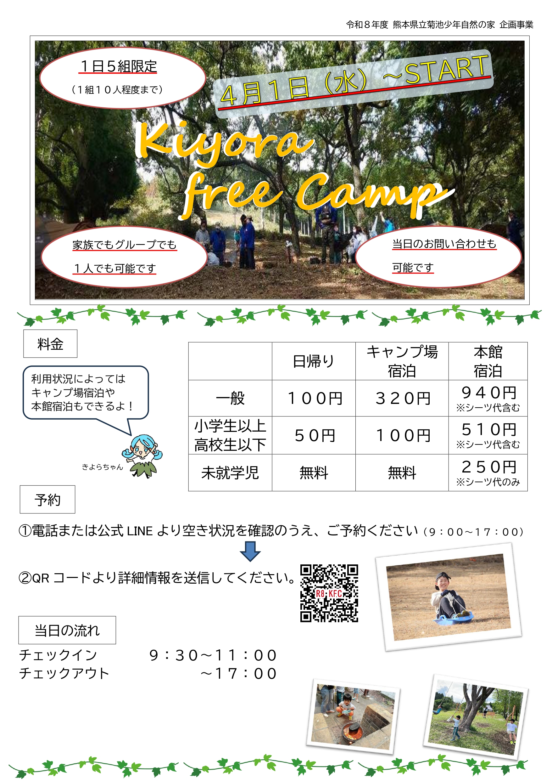 令和8年度企画事業 「きよらフリーキャンプ」随時受付しております。