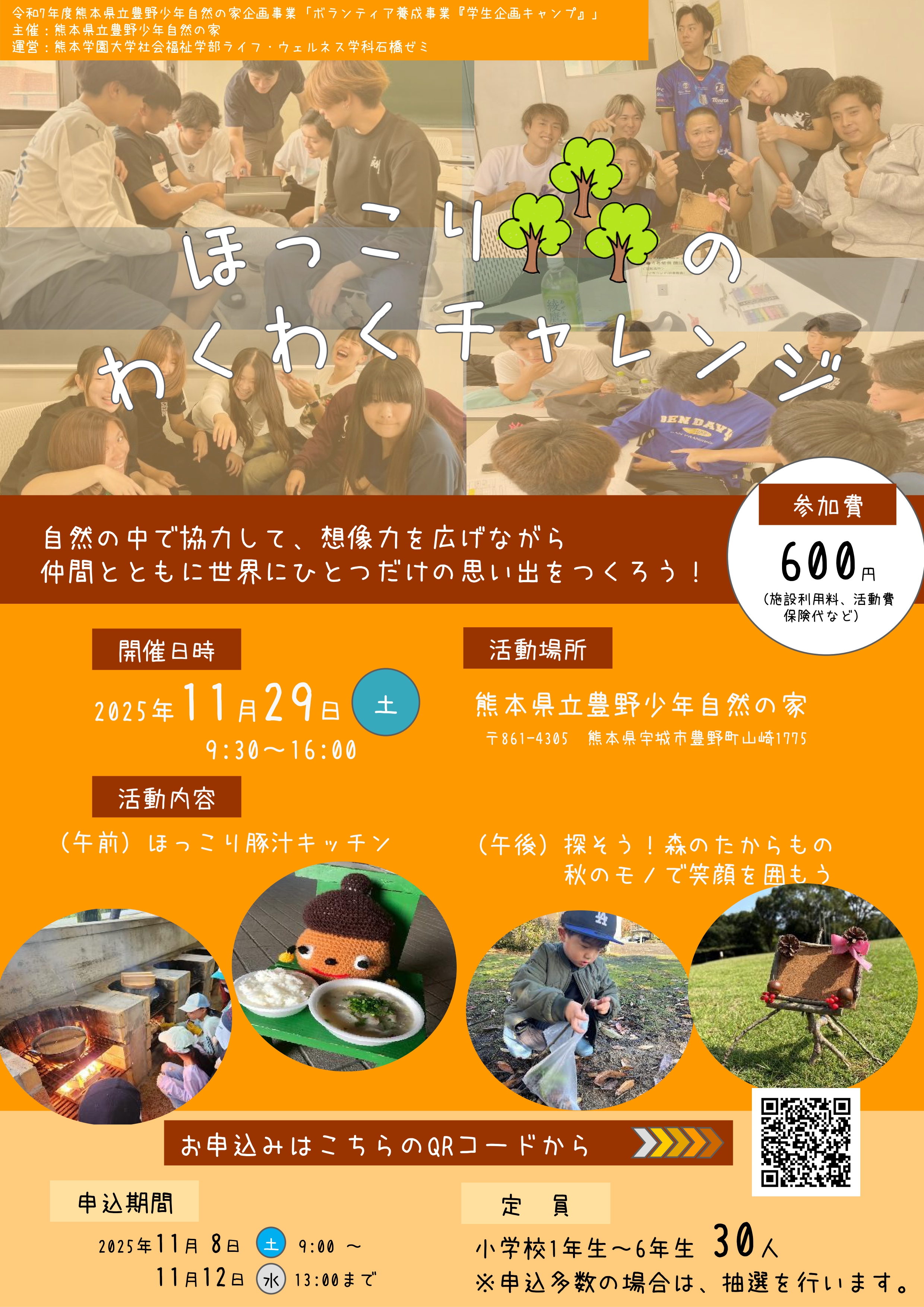 主 催:熊本県立豊野少年自然の家(指定管理者:ひとづくりJAPANネットワーク・三勢共同体)