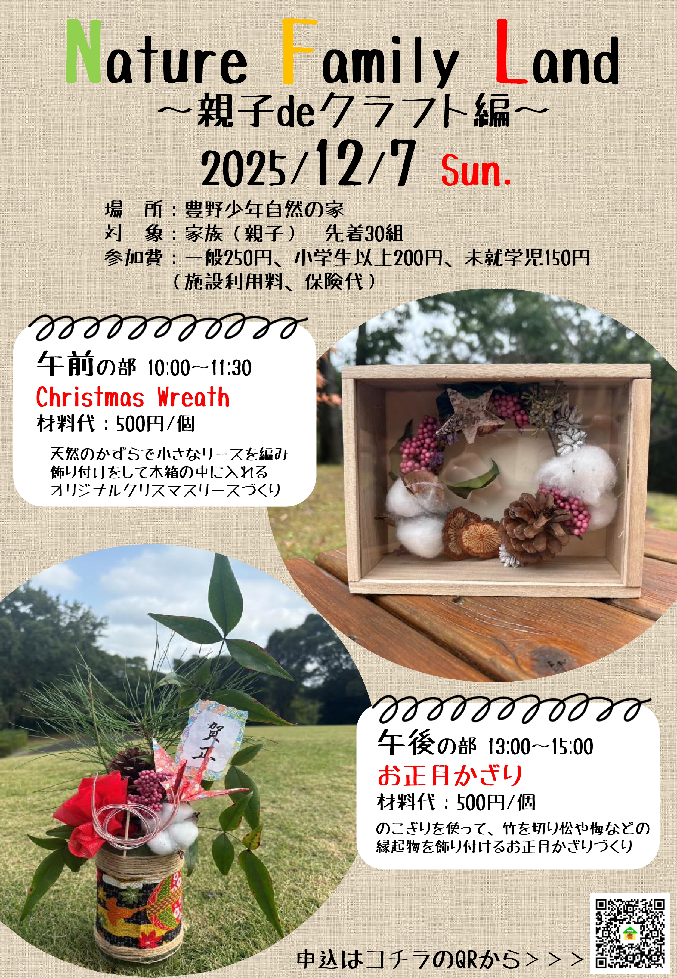 材料代:クリスマスリース、お正月飾り 各500円/個