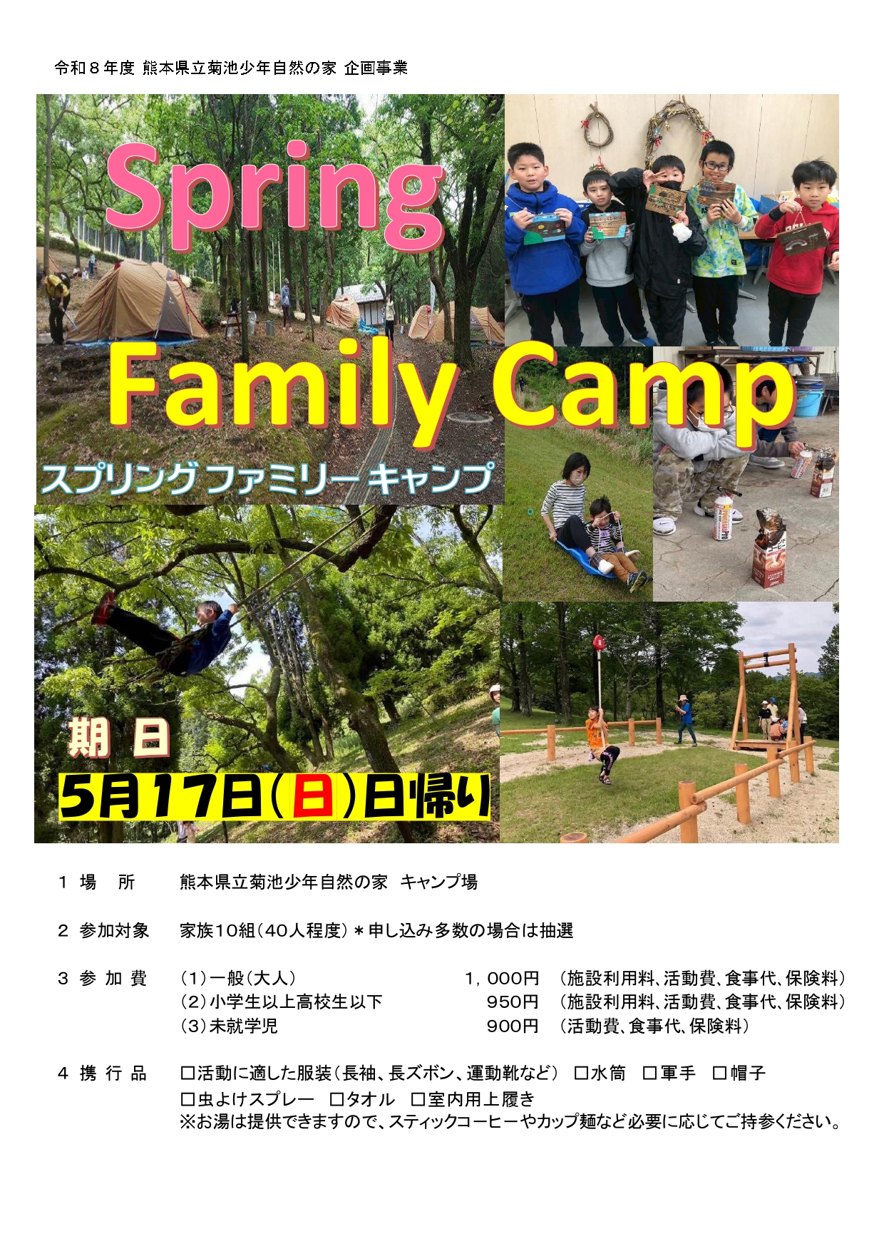 令和8年度企画事業 「スプリングファミリーキャンプ」受付しております。